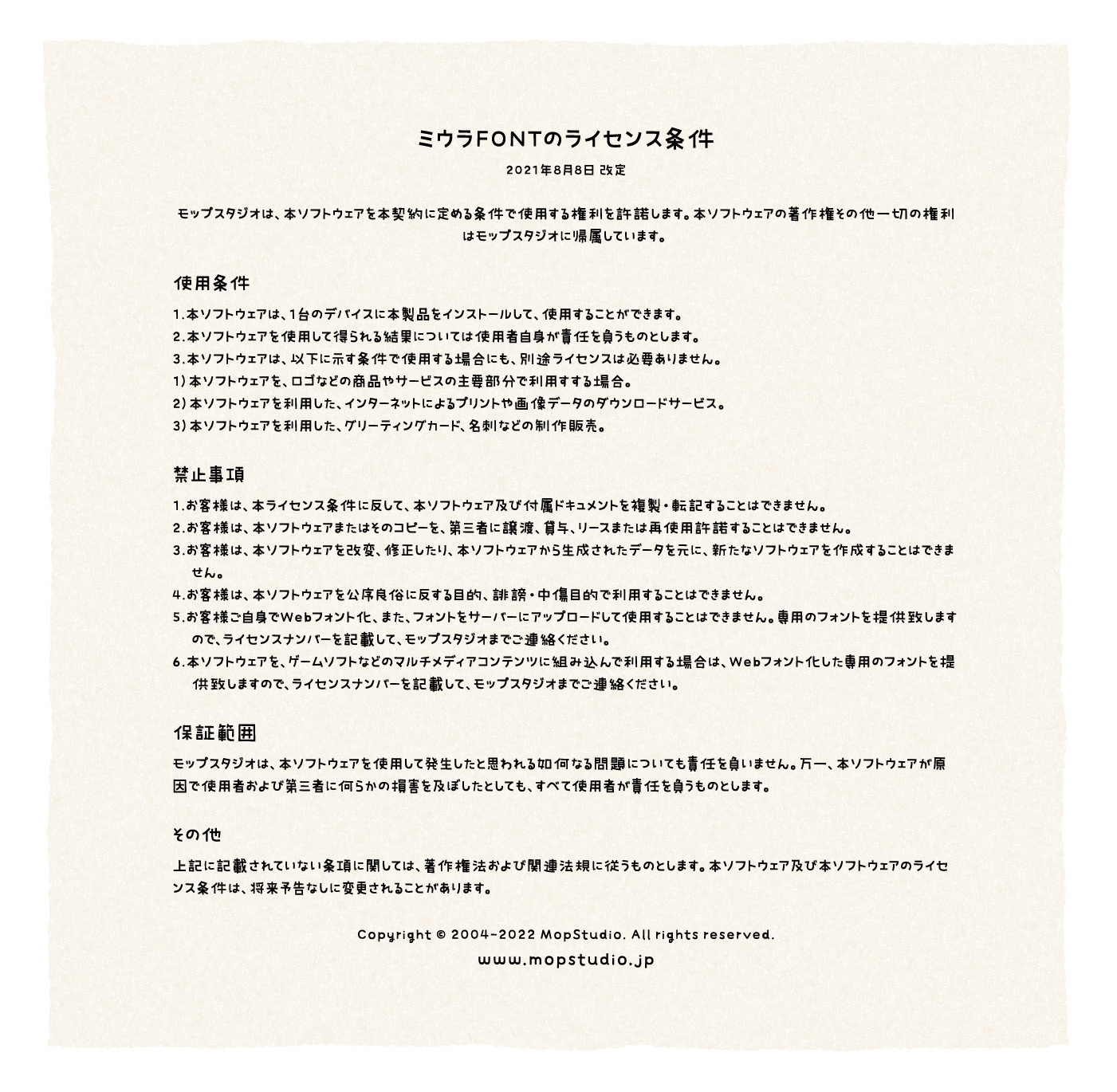 ミウラFONTのライセンス条件