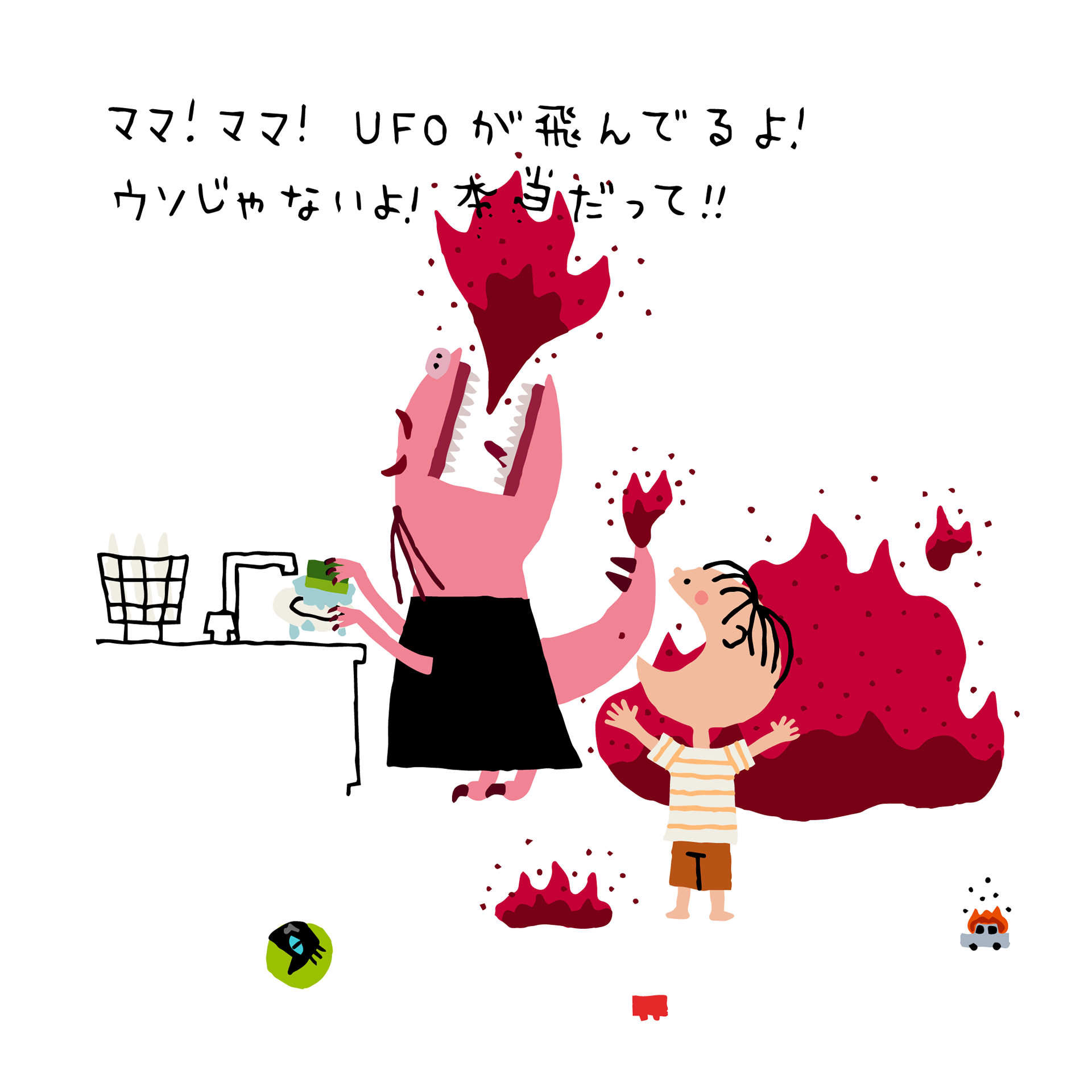 ママ!ママ!UFOが飛んでるよ!