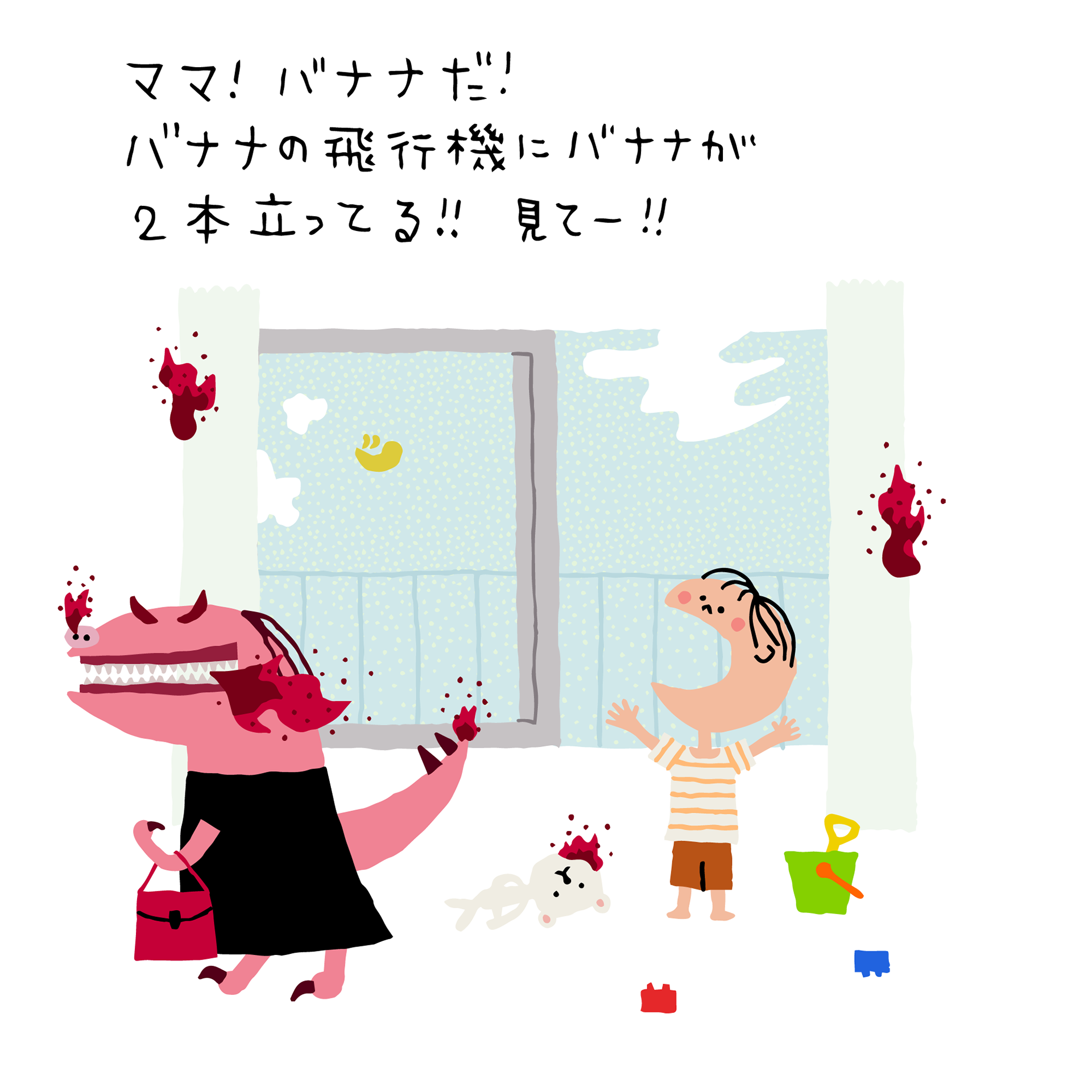 ママ!バナナだ!バナナの飛行機にバナナが2本立ってる!!見てー!!